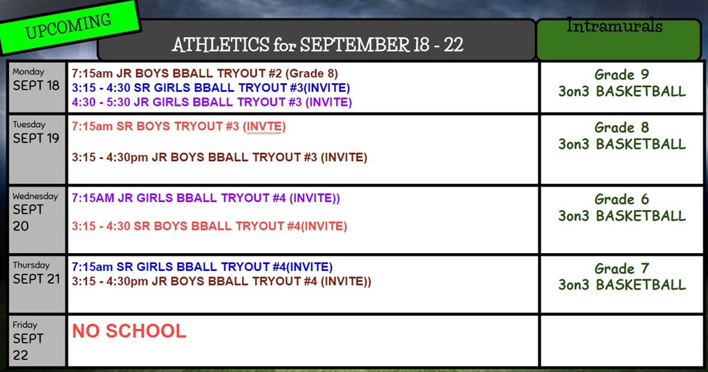 WNL Sept. 18-22 | Forms, IPPs, Lates, Leaving during Class, Quebec 2024, Treaty 7 Week, Minecraft, Fun Lunches